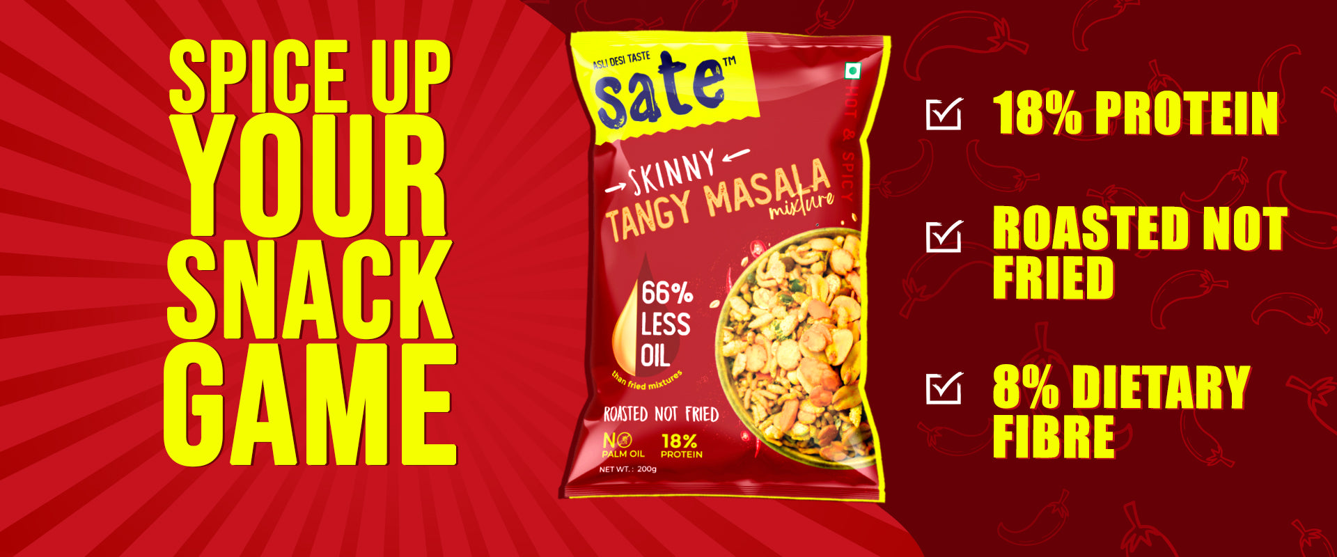 Sate Snacks provides a variety of healthy snacks online, offering the perfect balance of taste and nutrition. We feature a wide range of healthy namkeens that are high in protein, making them a guilt-free snack to satisfy every craving.